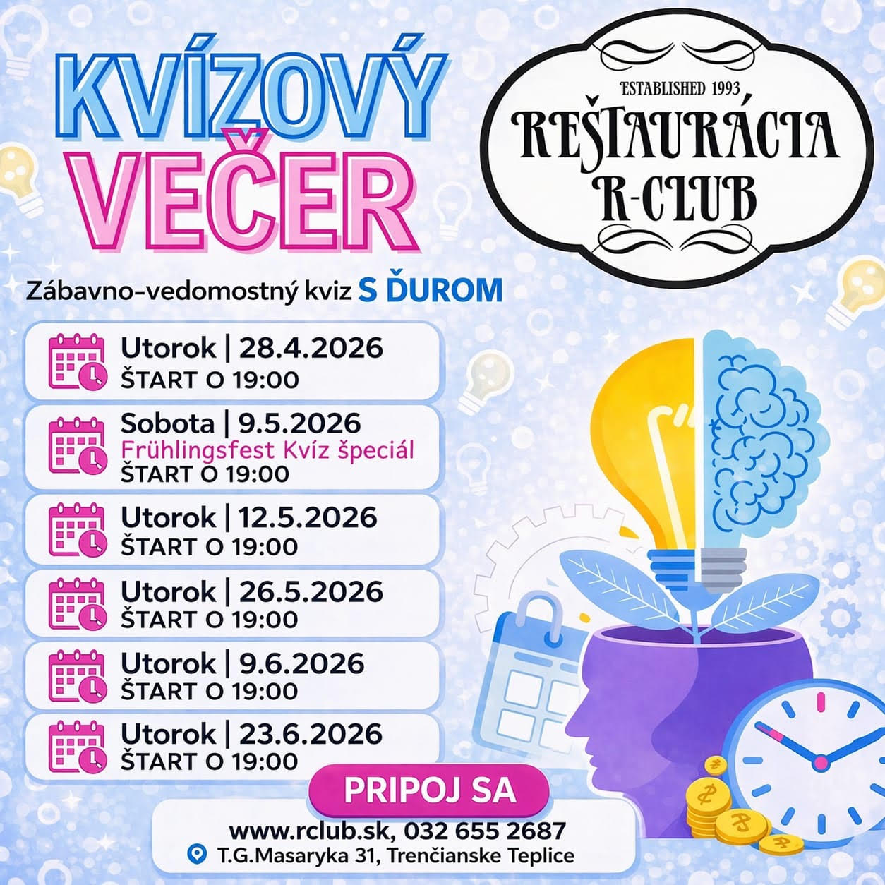 Reštaurácia R-Club Trenčianske Teplice. Sme rodinná reštaurácia ktorá Vás hostí už od roku 1993. Vitajte u nás!